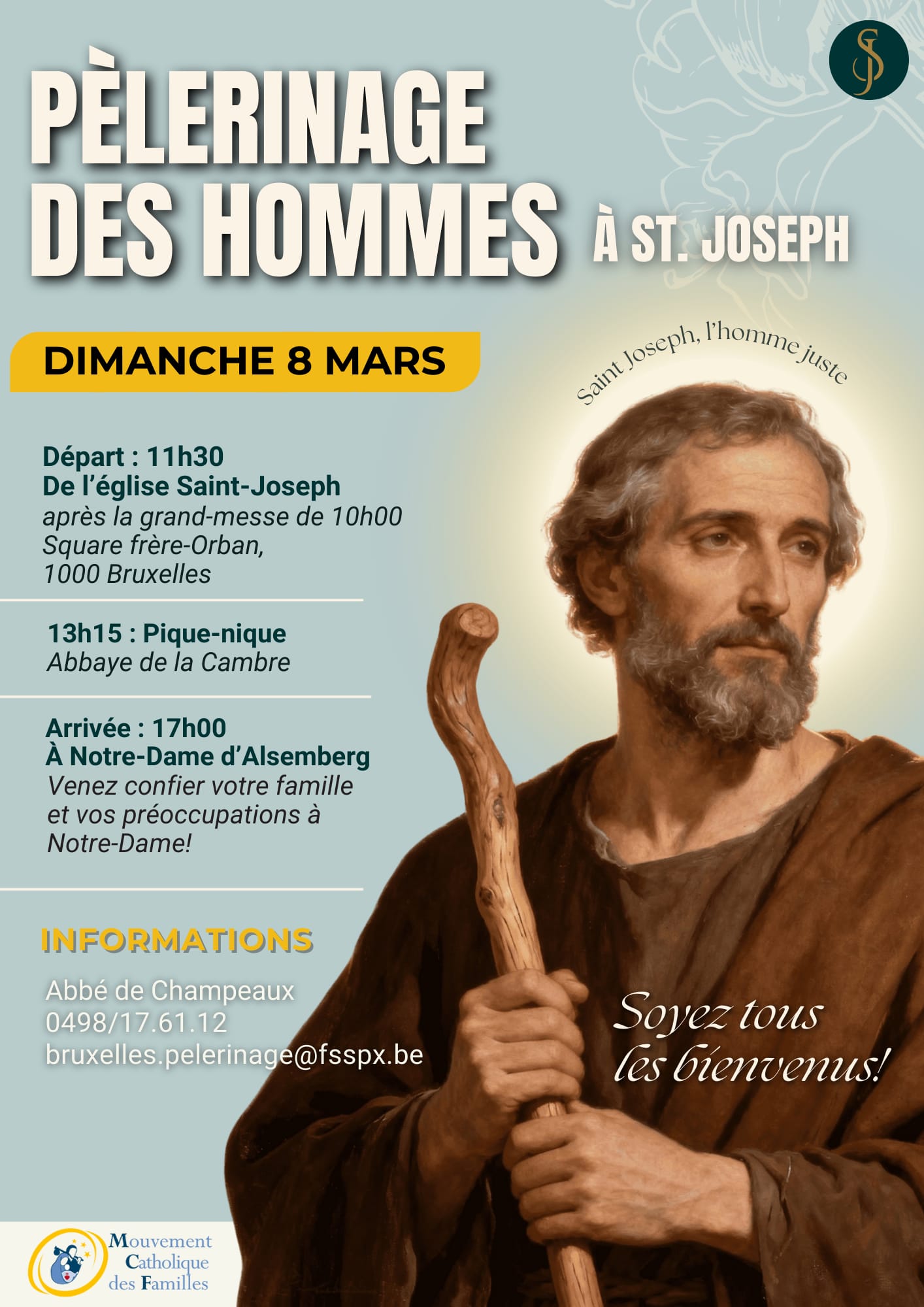 Le samedi 8 mars, les cercles les cercles de Belgique donnent rendez-vous aux hommes pour un pèlerinage à Saint Joseph.