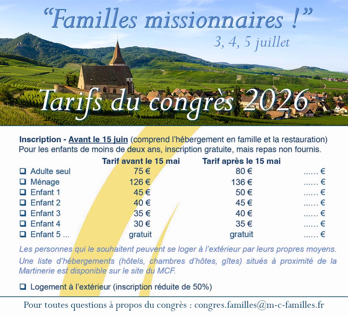 À l’occasion des 25 ans du Mouvement Catholique des Familles, nous avons choisi comme thème ce mot d’ordre enthousiasmant : « Familles missionnaires ! ».